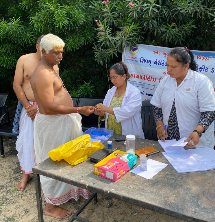 On 14/09/2025, Shivam Charitable Trust organized a Diabetes , where a total of 64 individuals were screened between 9:00 AM and 2:00 PM. During the camp, 20 participants were identified with diabetes and were advised for further follow-up and care.